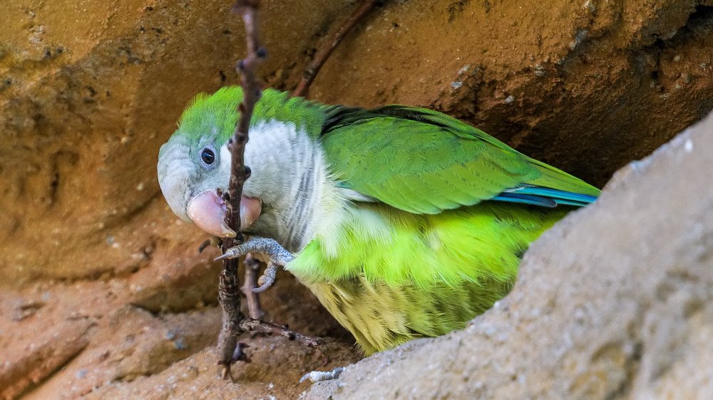 V Rákosově pavilonu je již k vidění i hnízdní aktivita. Materiál do budek si nosí například aratingové andští, místa ke stavbě hnízd hledají i papoušci mniší (na snímku). Foto: Petr Hamerník, Zoo Praha.