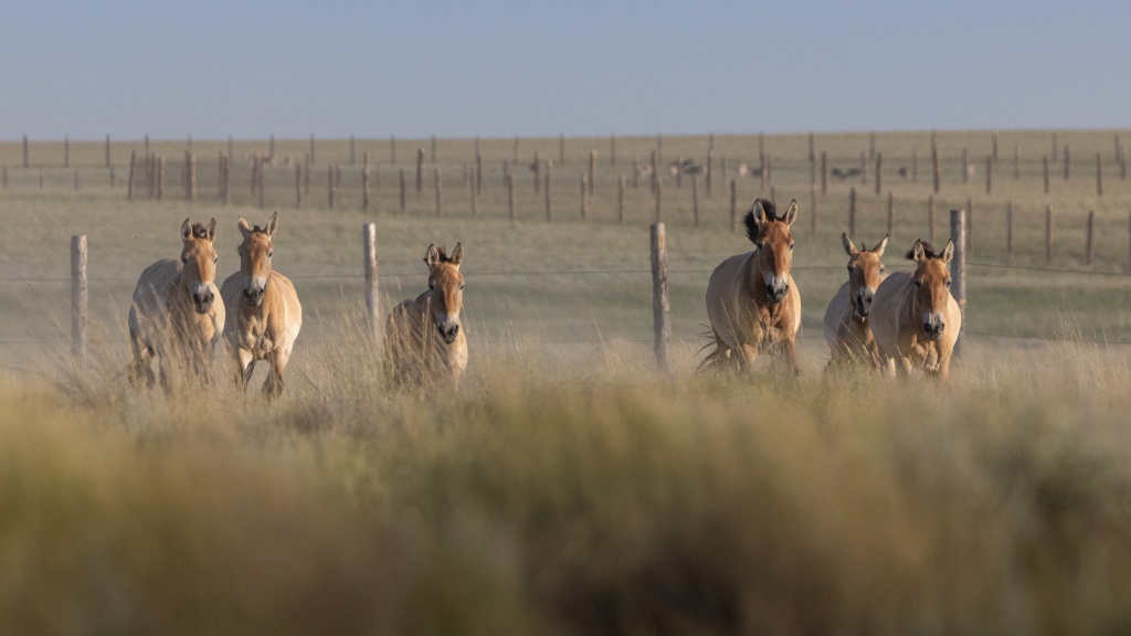 Včera v 18 hodin místního času se otevřela brána aklimatizační ohrady a první koně Převalského ve středním Kazachstánu vyběhli vstříc svobodě. Loni v červnu dovezení převaláci si skvěle přivykli na místní podmínky, a hřebec Zorro si tak harém pěti klisen mohl odvést do svého nového domova – rozlehlé Zlaté stepi (Altyn Dala). Klisny Wespe a Umbru opatřili výzkumníci GPS obojky, aby šlo skupinu monitorovat i nadále. Divocí koně se tak díky Zoo Praha a jejím partnerům nyní vrátili do volné přírody Kazachstánu, odkud před stovkami let v důsledku lidské činnosti vymizeli. Koně přepravení tento týden z Evropy mezitím zvládli první noc v reintrodukčním centru ve skvělé kondici.