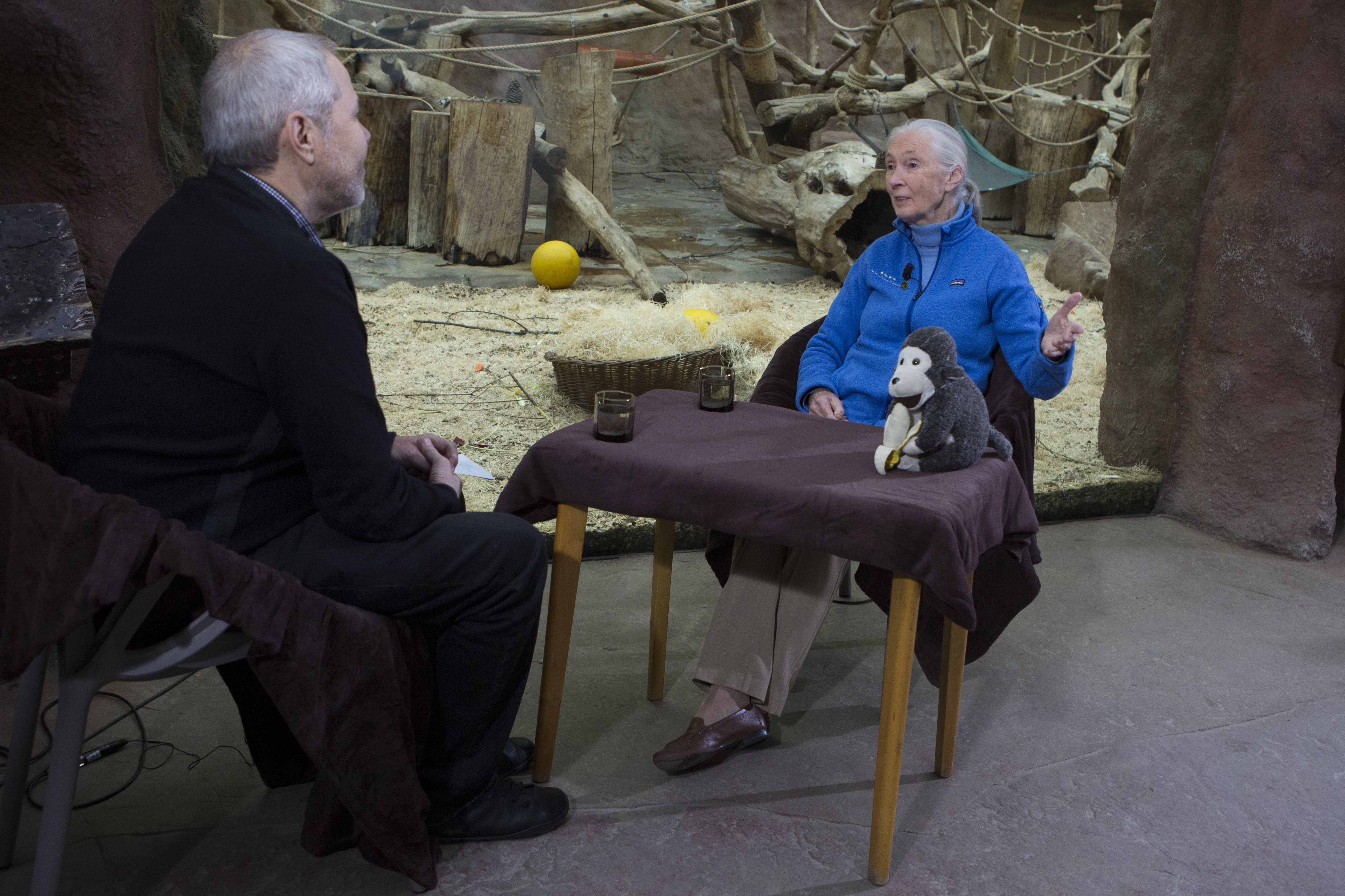 Druhá návštěva Zoo Praha přivedla v úterý 13. prosince Jane Goodall opět do Pavilonu goril, kde byl připraven tým České televize s populárním moderátorem a hercem Markem Ebenem. Za účasti rodiny goril, která se v pozadí věnovala krmení a enrichmentu, byl s Jane Goodall natočen další díl série rozhovorů „Na plovárně“, jednoho z nejpopulárnějších pořadů České televize. O termínu jeho vysílání budeme včas informovat. Velmi si vážíme času, který nám Jane Goodall věnovala a máme radost, že se jí Zoo Praha i naše aktivity na ochranu zvířat a přírody líbí. Dovolujeme si jí i celému jejímu týmu, který jí doprovázel, touto cestou poděkovat.