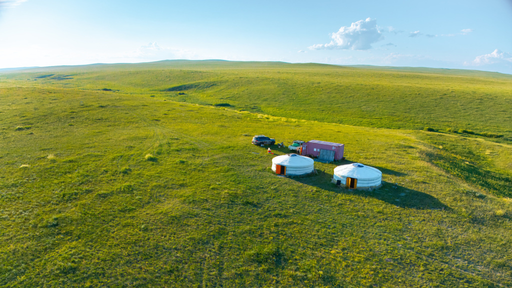 Pohled na Údolí klášterů, kde už na jaře začne stavba reintrodukčního a aklimatizačního centra pro koně Převalského. Zatím jsou na místě dvě jurty a kontejner. Foto: Miroslav Bobek, Zoo Praha