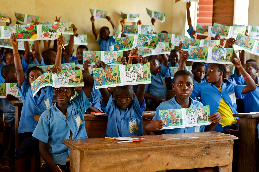 - Výroba omalovánek s gorilím příběhem a jejich distribuce spolu s pastelkami společnosti Koh-i-noor africkým školákům