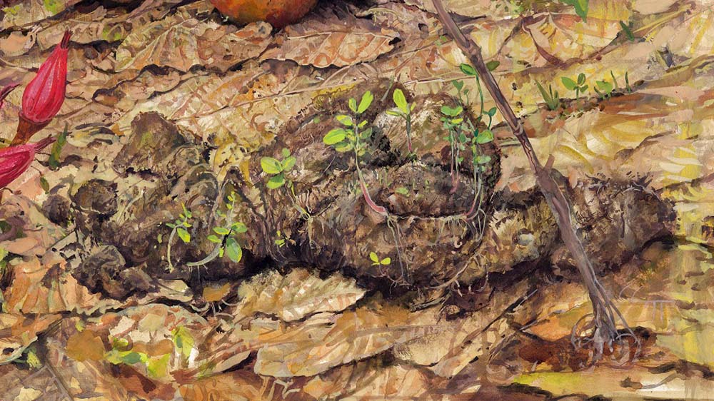 • Gorillas, elephants, pigs and other fruit-eaters are essential for forest regeneration. They disperse seeds in their dung, many of which germinate better after passing through the gut.
