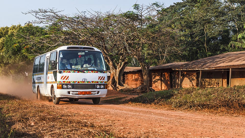 Slavnostní uvedení proběhlo ve městečku Somalomo na okraji rezervace Dja, kde má autobus základnu.