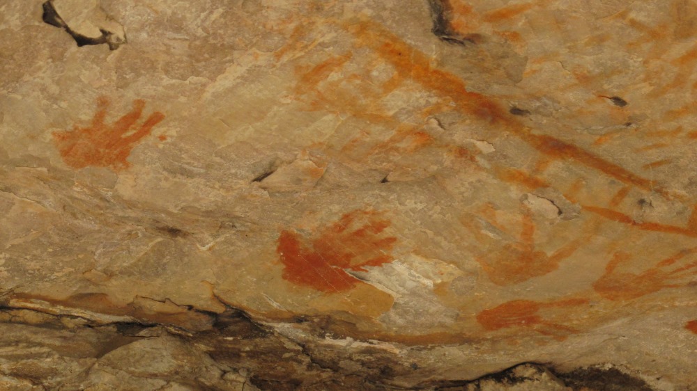 At a number of sites in Australia we can find rock paintings and handprints made by many generations of Aboriginal people. One of them is Gulgurn Manja Shelter in the State of Victoria in southern Australia. The handprints here were made solely by children.