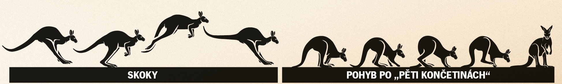 For kangaroos and wallabies, hopping requires hardly any effort at all. The large and flexible tendons in their hind legs act like giant springs. Upon impact they are compressed and subsequently catapult back, giving the kangaroo a springboard for the next rebound. This economical way of moving allows kangaroos to run at speeds of up to 70 km/h and a single jump can cover up to nine metres! For slow movement on the ground – for example, when grazing – kangaroos hop on “five” legs, using their tail as the fifth limb