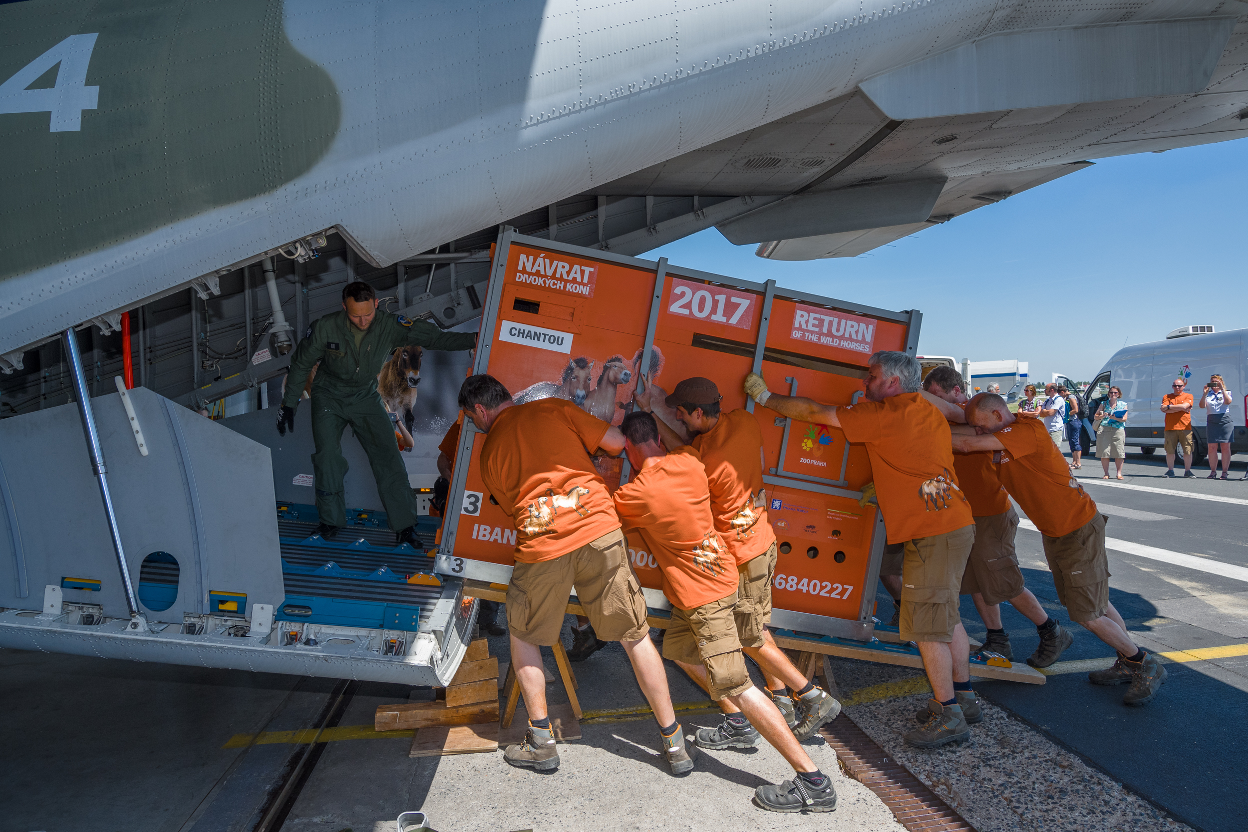 Nakládání jedné ze čtyř klisen do armádního letounu. Foto: Petr Hamerník Nakládání jedné ze čtyř klisen do armádního letounu. Foto: Petr Hamerník