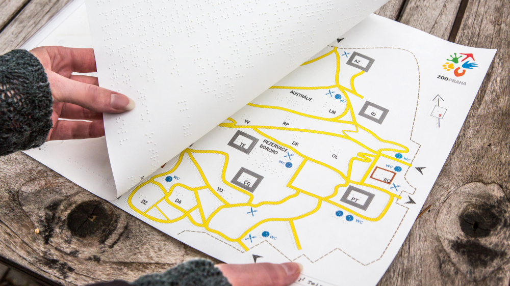 Pro lepší orientaci v rozlehlém areálu Zoo Praha může nevidomým návštěvníkům pomoci speciální hmatová mapa.