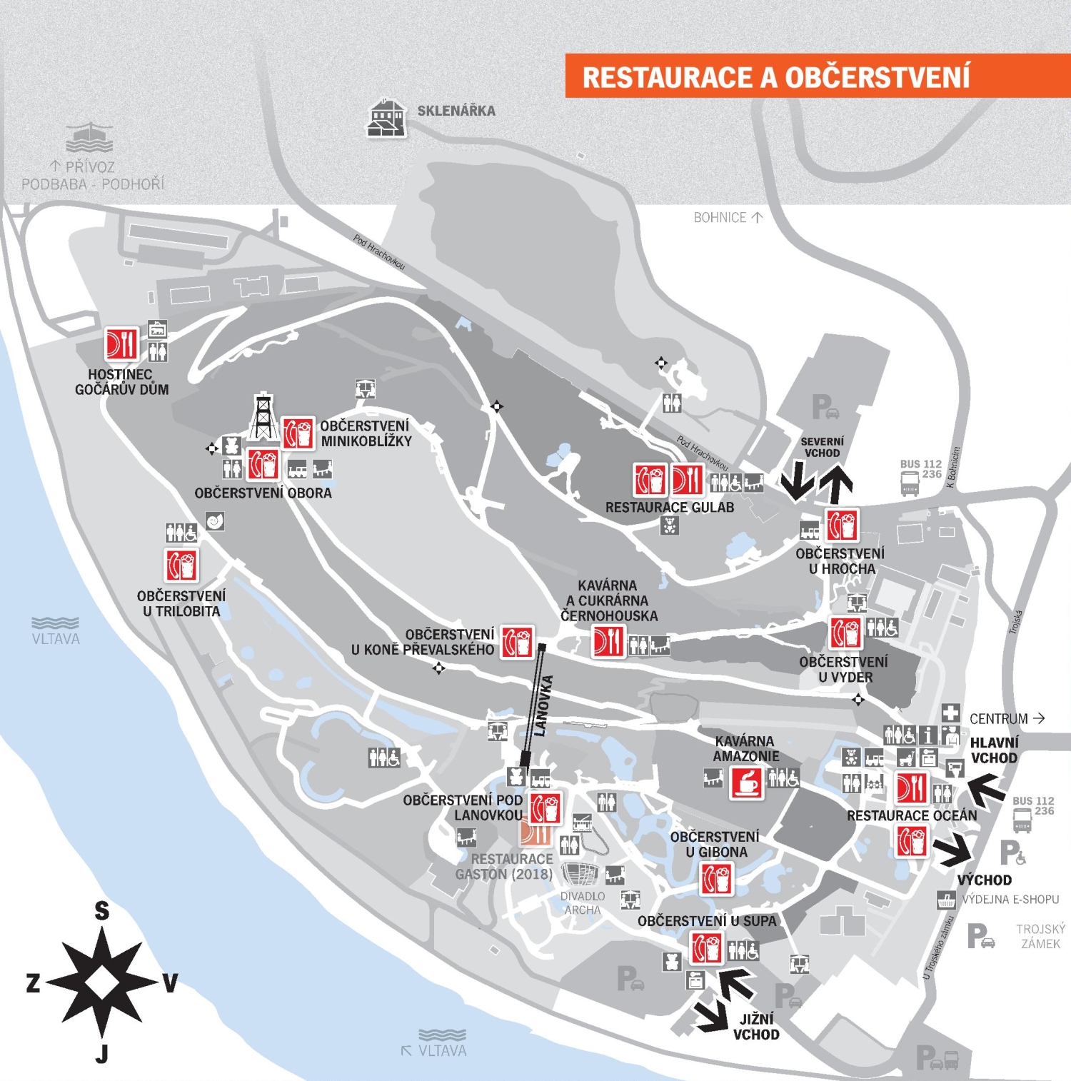 Aktuálně jsou v Zoo Praha přístupné vnitřní prostory restaurací i jejich zahrádky.