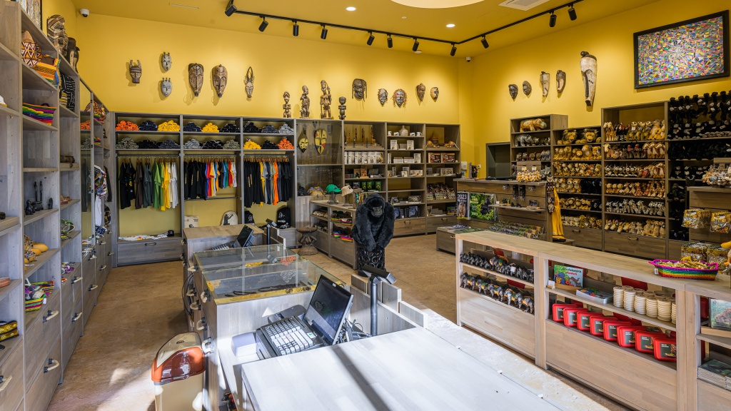 Nachází se ve spodní části zahrady u zastávky lanové dráhy, naproti Pavilonu velkých želv. Specializovaný obchod zaměřený na prodej oblečení a doplňků Zoo Praha a značky BUSHMAN.