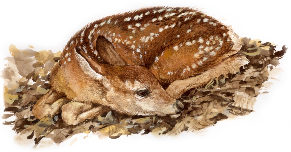 Mláďata jelenovitých bývají velmi často skvrnitá. Taková kresba slouží jako maskování v hustém podrostu, v němž se novorozené mládě o samotě ukrývá po většinu dne, zatímco jeho matka se krmí. Stočené do klubíčka zde nehybně čeká na její návrat spojený s kojením.