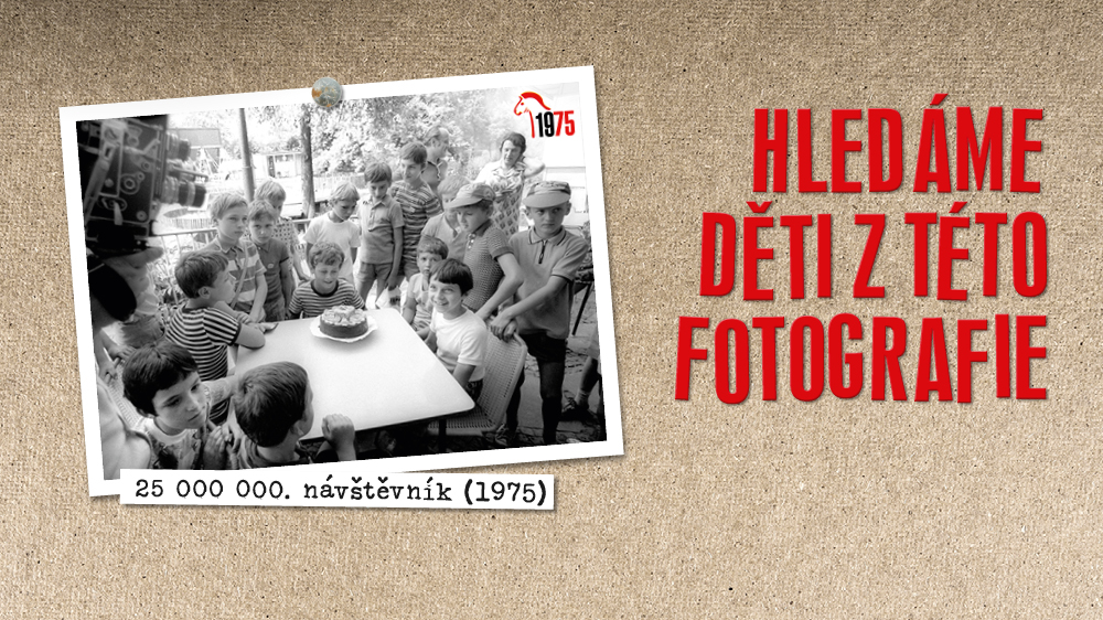 V roce 1975 přivítala Zoo Praha svého 25 000 000. návštěvníka. Rádi bychom jeho - i další děti, které navštívily zoologickou zahradu spolu s ním a jsou zachyceny na archivní fotografii - vyhledali a pozvali na slavnostní zahájení letošní hlavní sezóny. Obracíme se proto na veřejnost s žádostí o pomoc při hledání dětí z fotografie. Připojujeme ještě malou nápovědu: jednalo se o cvičence, kteří do zoo zavítali v rámci Spartakiády.