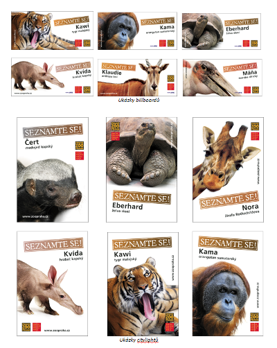 Pražská zoo na prahu hlavní sezony vyjíždí s novou reklamní kampaní. „Chceme návštěvníky pozvat do zoo a představit jim její nejzajímavější obyvatele. A to zcela konkrétní jedince, kteří jsou nejen představiteli fascinujících živočišných druhů, ale současně mají i své vlastní příběhy a charakterové vlastnosti,“ vysvětlil Miroslav Bobek, ředitel Zoo Praha. „Seznamte se! – tenhle slogan mě napadl při prvním setkání s Eberhardem. Vážně stojí za to se s ním seznámit – a ovšem nejen s ním,“ dodal.