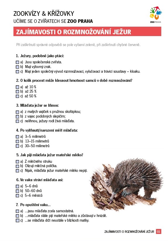 Víte, jak se rozmnožuje vejcorodý savec ježura australská? Podívejte se na naše vzdělávací video a vyplňte si interaktivní kvíz ZDE.