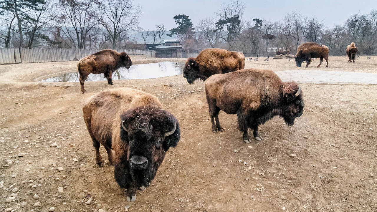 Stádo bizonů. Foto: Archiv Zoo Praha Stádo bizonů. Foto: Archiv Zoo Praha