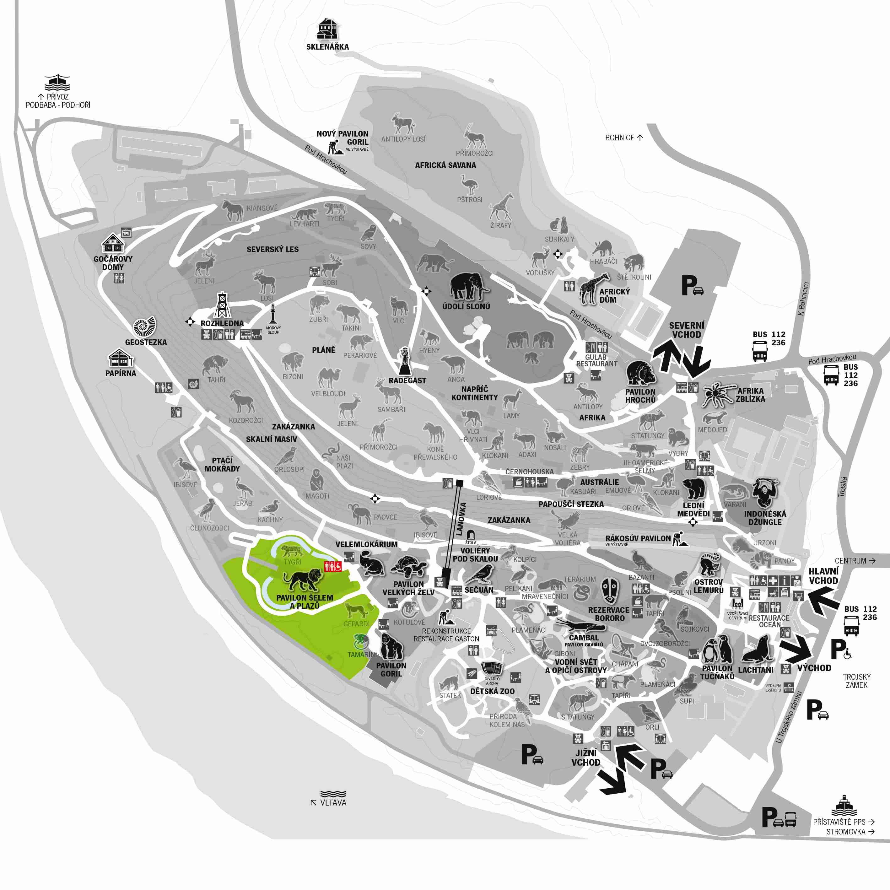 Pavilon je vybudován na násypu vysokém 2–5 m. Ubikace zvířat jsou oddělené sklem a s venkovními výběhy spojené vyvýšenými tunely. Střed pavilonu zabírá velké atrium s prosklenou střechou, nacházejí se zde také terária a prostorné akvaterárium. Plocha pavilonu činí 2 275 m2, plocha výběhů 2 750 m2. Pavilon prošel dvojí rekonstrukcí poprvé bezprostředně po povodních v roce 2002 a podruhé mezi lety 2011 a 2012. Návštěvnické prostory tehdy získaly zcela nový vzhled a pavilon byl vybaven moderními interaktivními prvky a wi-fi připojením.