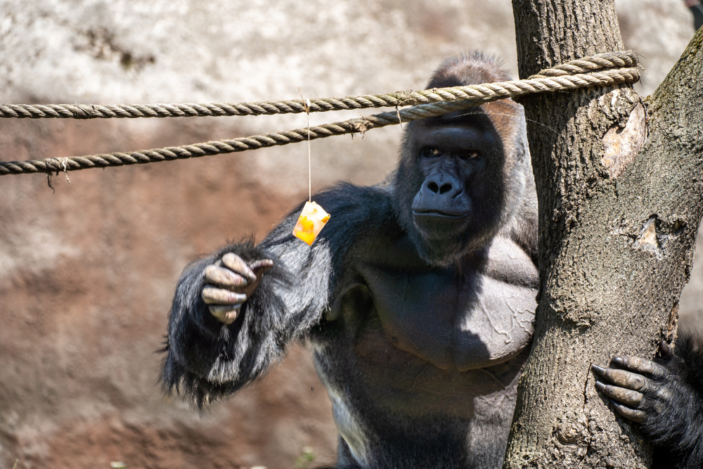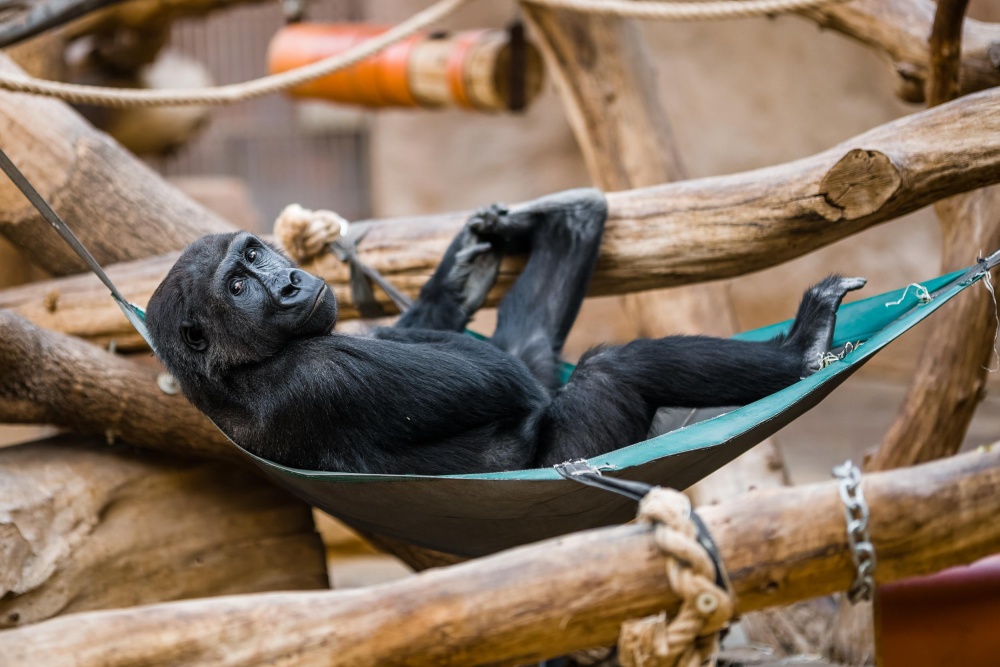 samce mládenecké skupiny, která je díky jeho přítomnosti stabilnější. Chovná skupina goril byla v roce 2022 přesunuta do nového pavilonu v horní části zoo.